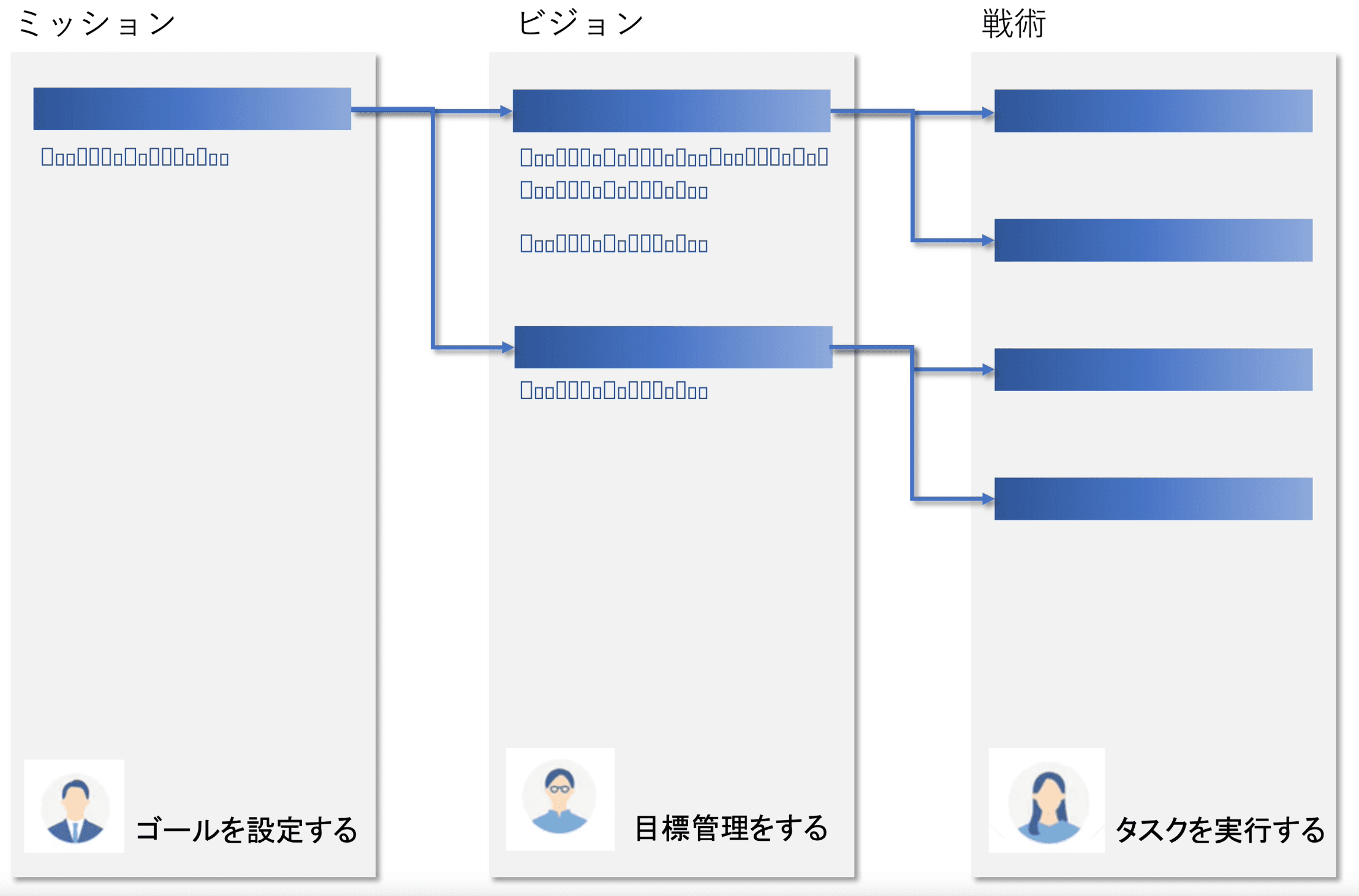 中期計画, 部署ミッション, 個人目標が繋がり、 "シンプルで実行しやすい戦略づくり"を可能にします
